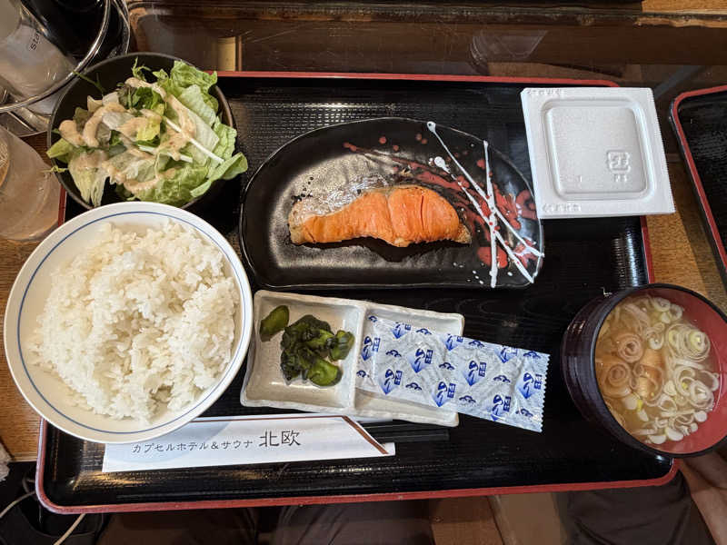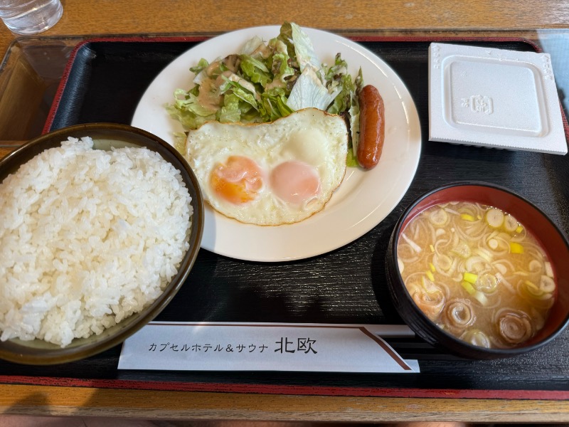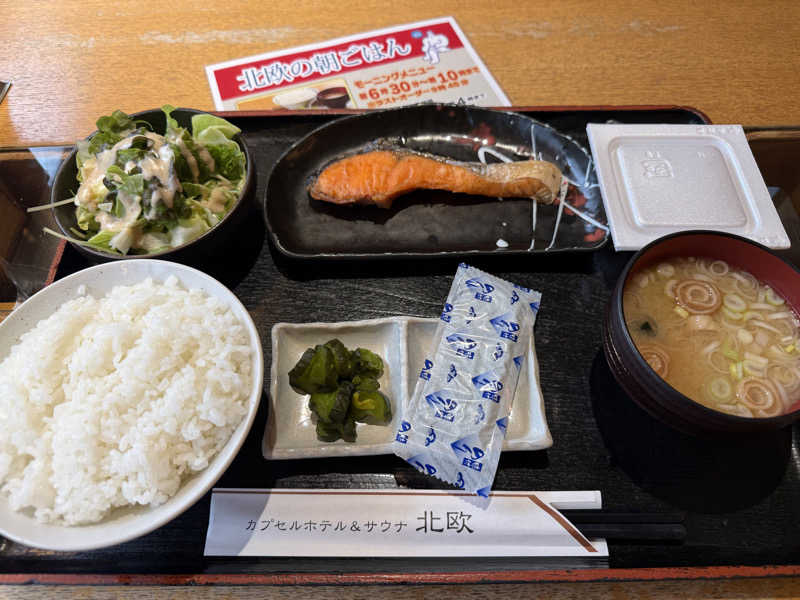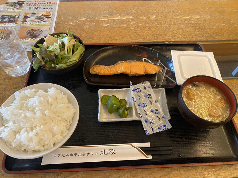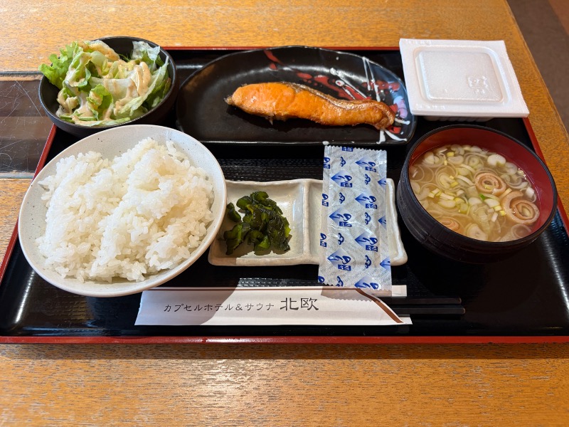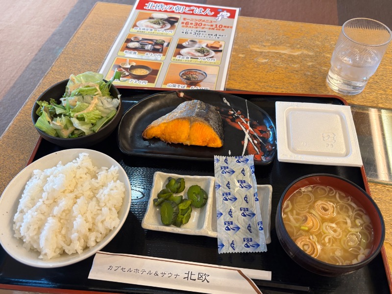 今回は朝食付けてみました、サラダシャキシャキ、味噌汁美味しい😋