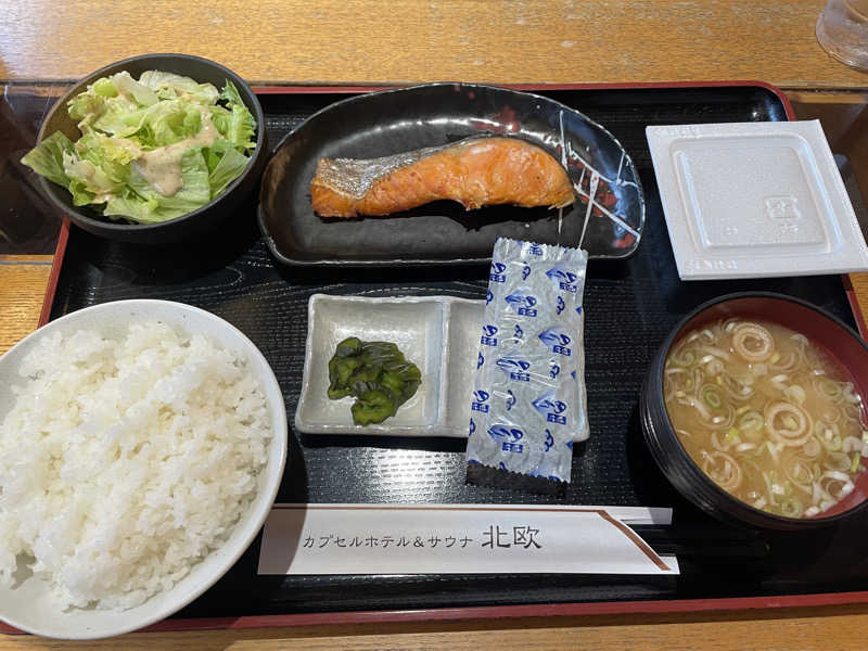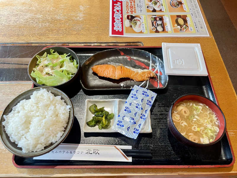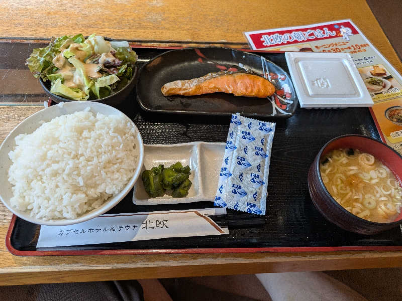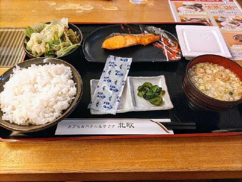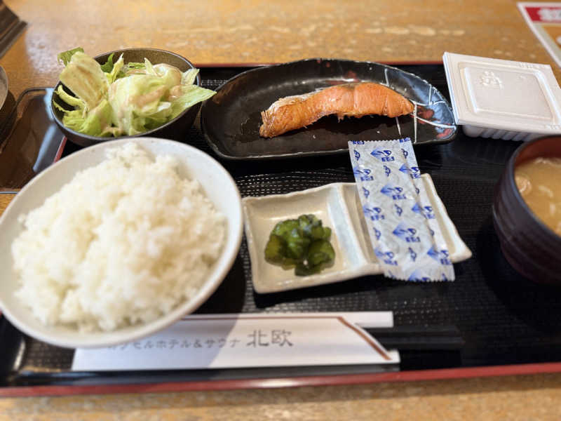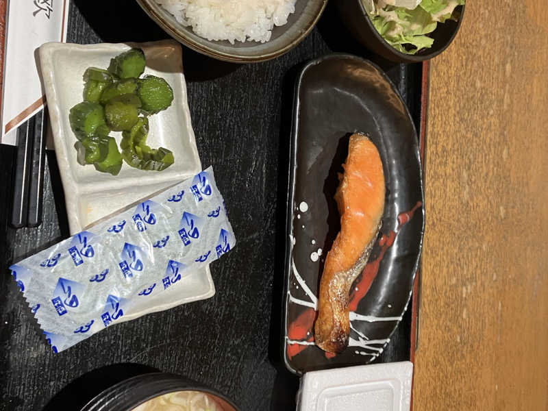 本格的な朝定食。シャケも油乗ってて美味しい!