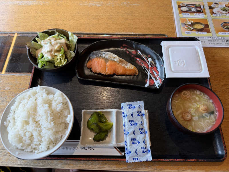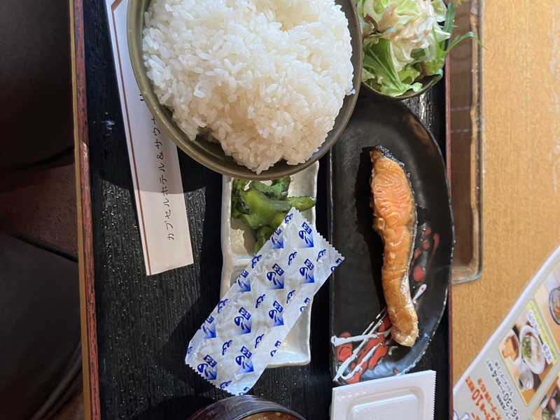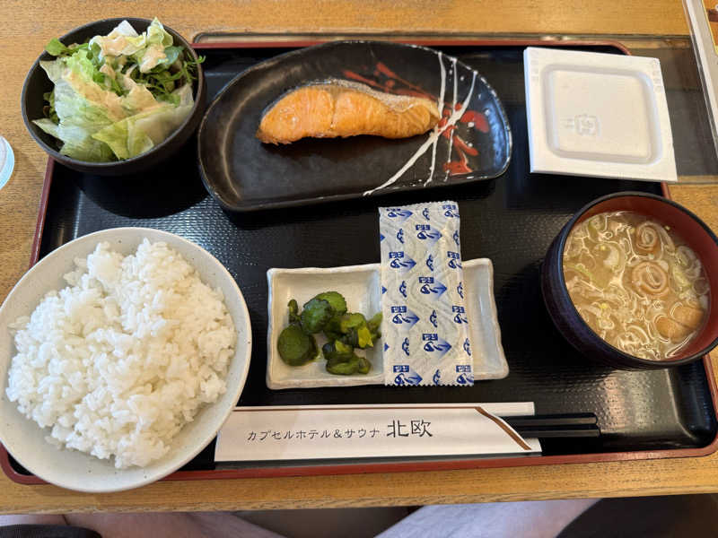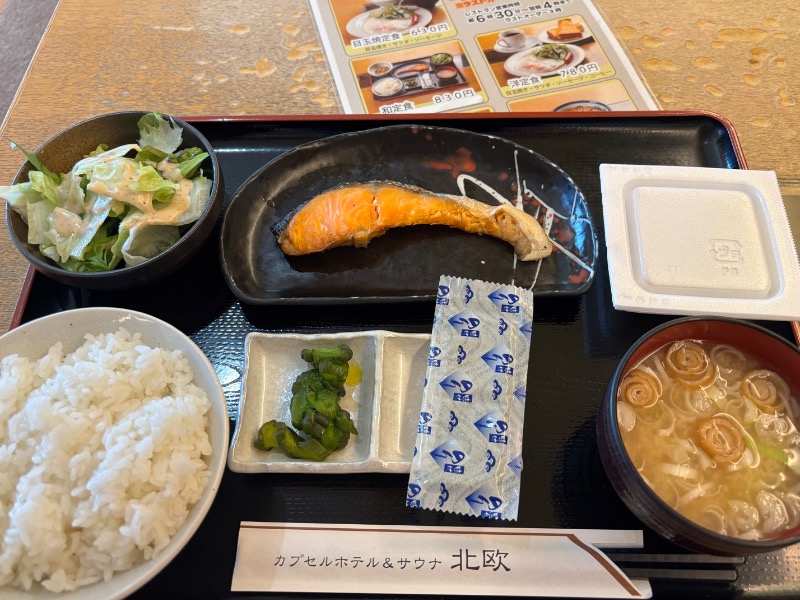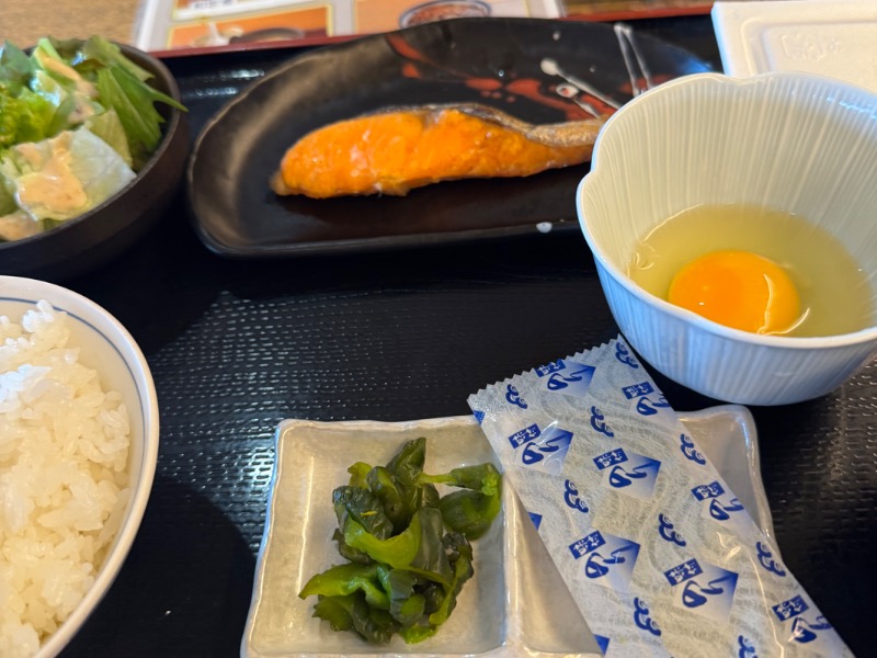 今回は朝食付けてみました、サラダシャキシャキ、味噌汁美味しい😋