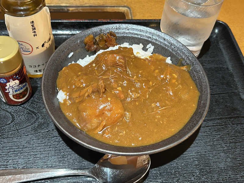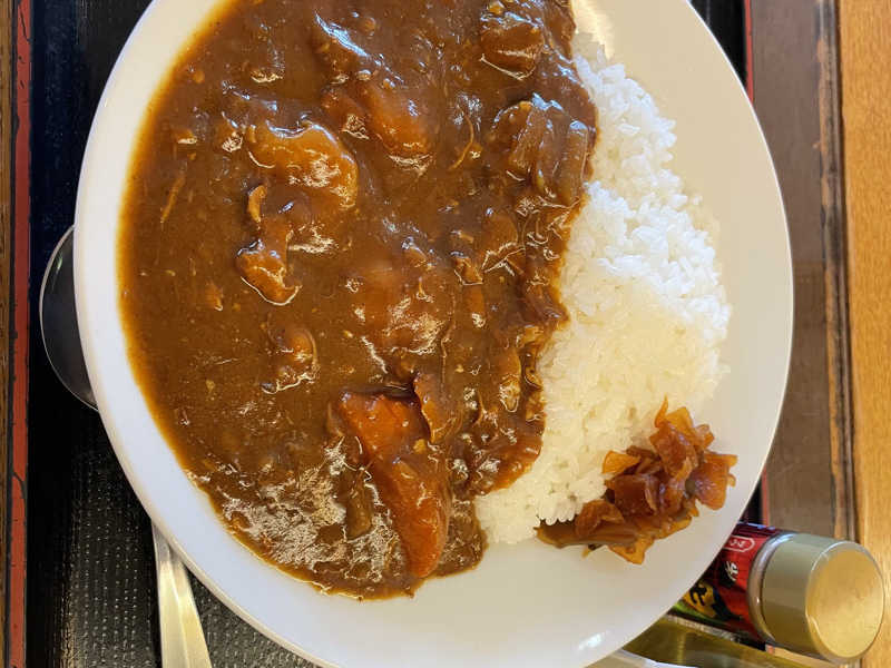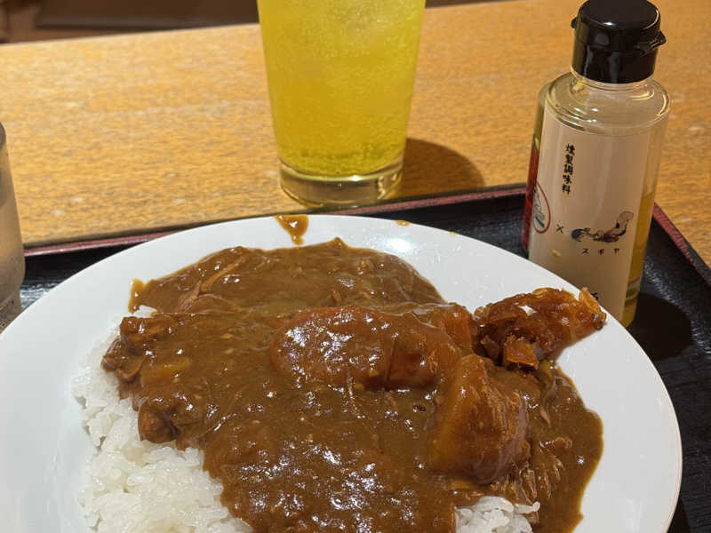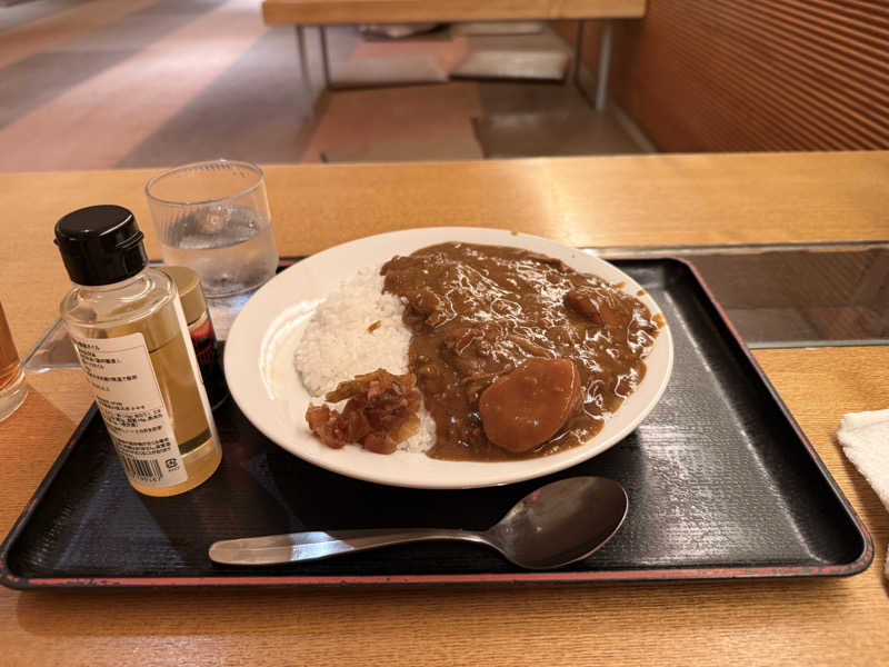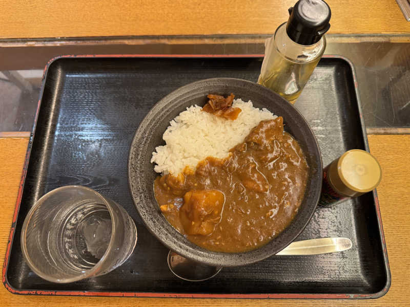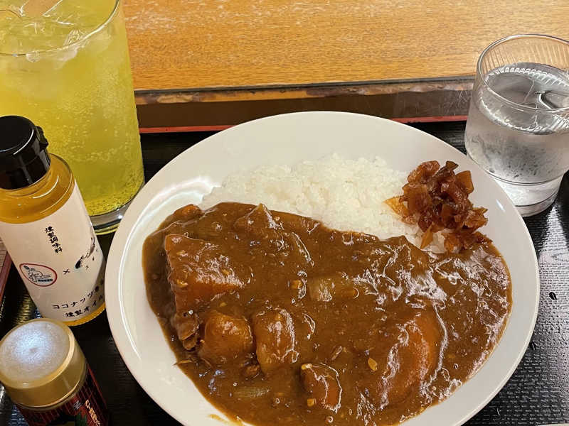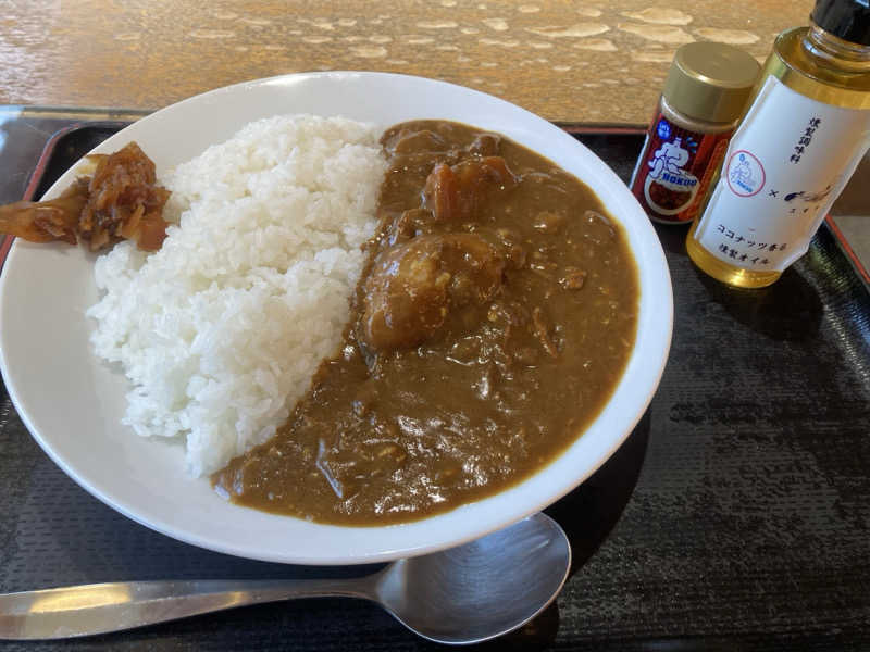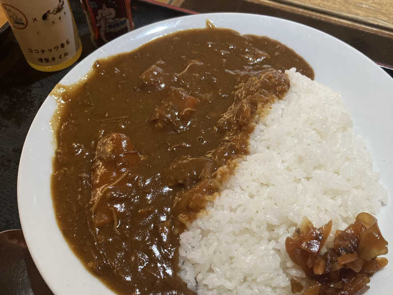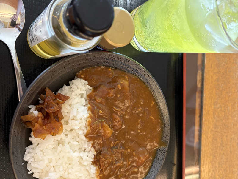 朝カレー。朝サウナ後のお腹が空いているところにゴロっと野菜が嬉しい!途中からオイル味変が最高👍🏻