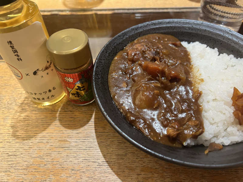 カレー美味しい、七味が好み、ココナッツオイルは不思議な味