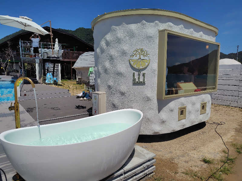 今回は利用しませんでしたが、グランピング施設としても絶景と良いサウナに加え、綺麗で快適な設備、電動キックボート(島巡りしたらめっちゃ楽しそう)や釣りなどの体験、バーベキューなど楽しい要素が満載。
