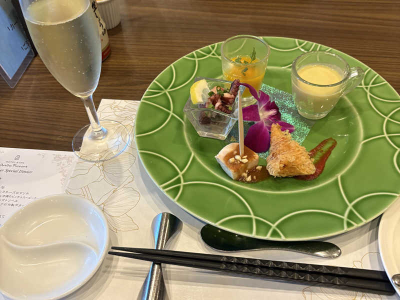 ここはオールインクレーシブルということでチェックイン後にビールを2杯🍺その後空いてる貸切風呂で家族と入りディナーに🍽️ディナー中もそりゃお酒飲みますよね🍷まぁこれが後々痛い目を見ることに…。