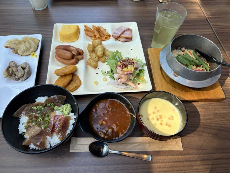 食べ終わり大浴場に子供と一緒に🛀そしてそこに併設せれてるサウナに💨しかしサウナ入ったのもあまり記憶なく気がついたら露天にある椅子に爆睡😪子供の声かけにも気が付かず😴なのでサウナの記憶あまりないという失態を😱いやはや飲みすぎましたねぇ😵とりあえず水風呂はないのでいささか物足りなさがありますが水シャワー浴びで外気浴‼️まぁその後嫁に怒られたのは言うまでもなく😓
