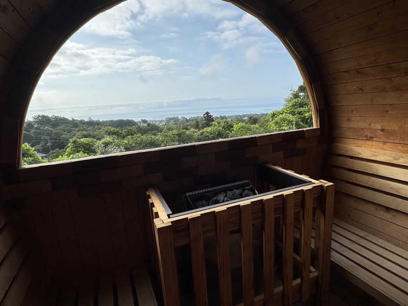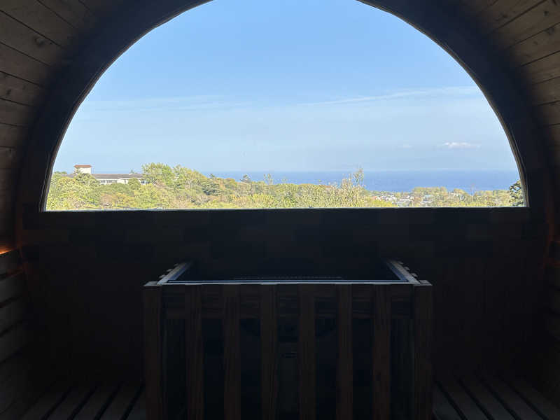 露天エリアは海が見える最高のロケーション。バレルサウナ内も窓があって海が見える!