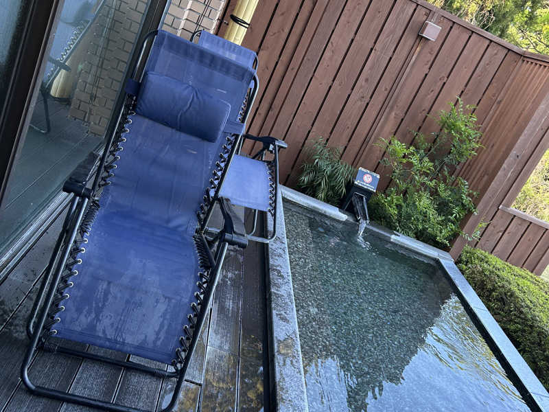 ひとしきりサウナをこなした後は露天風呂エリアにあるインフィニティチェアでのんびりと…