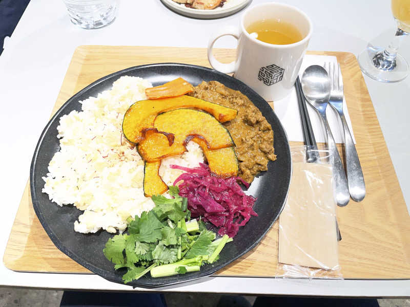 パクチーとラムキーマの相性が良かったです。素揚げの野菜も香ばしかったです。