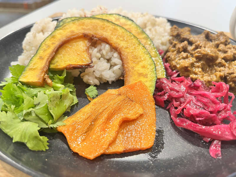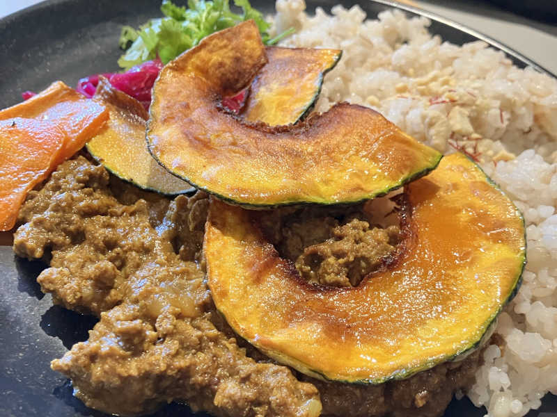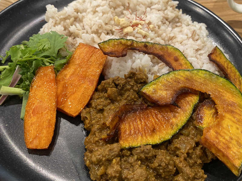 素揚げした野菜もキーマもとても美味しい😋サウナ上がりなのでペロリでした