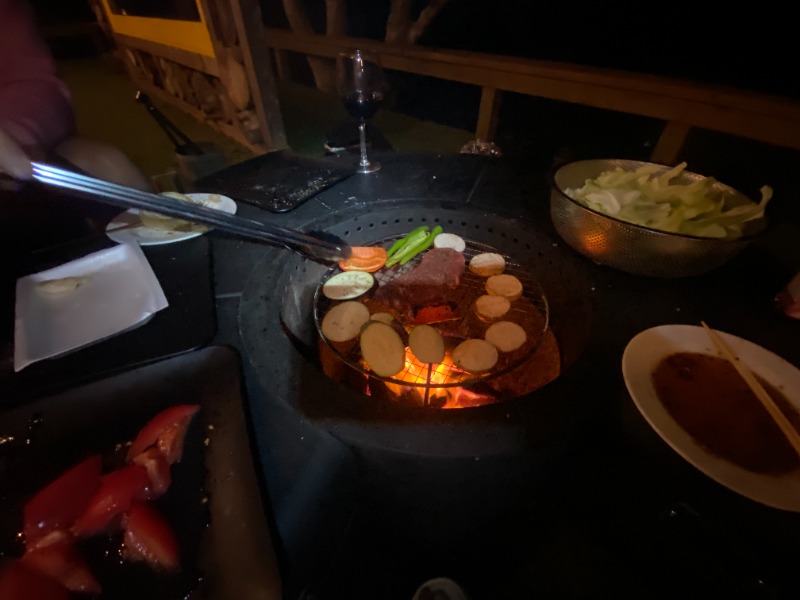御影マチマルシェ(神戸牛牧場直営精肉店)。行きしに手に入れた「六甲うしぼく」のフィレ肉、炭火焼き。
