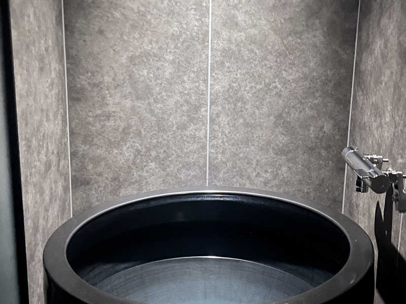 壺タイプの水風呂で1名サイズ。 部屋に縦長の冷凍庫があり、中には氷が入った袋が2つセットされている。 好きなタイミングで水風呂に投入することができる。