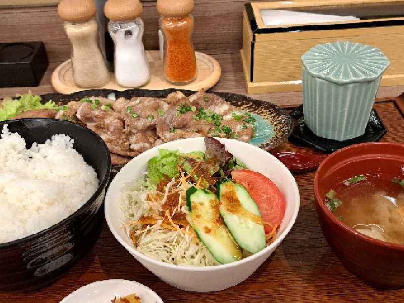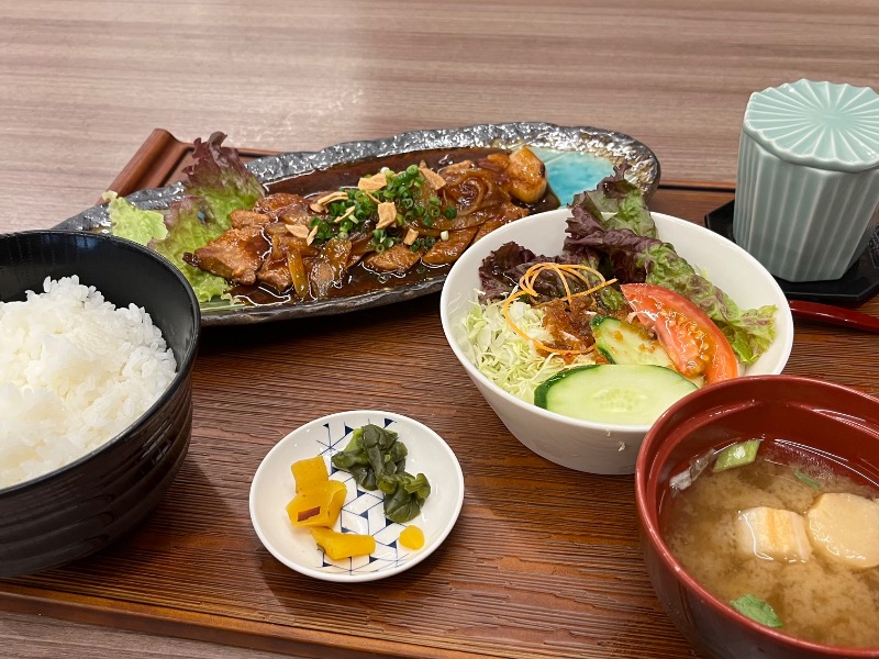 ひさびさの食堂で、好物の生姜焼き定食🍙オイシイヨ😋