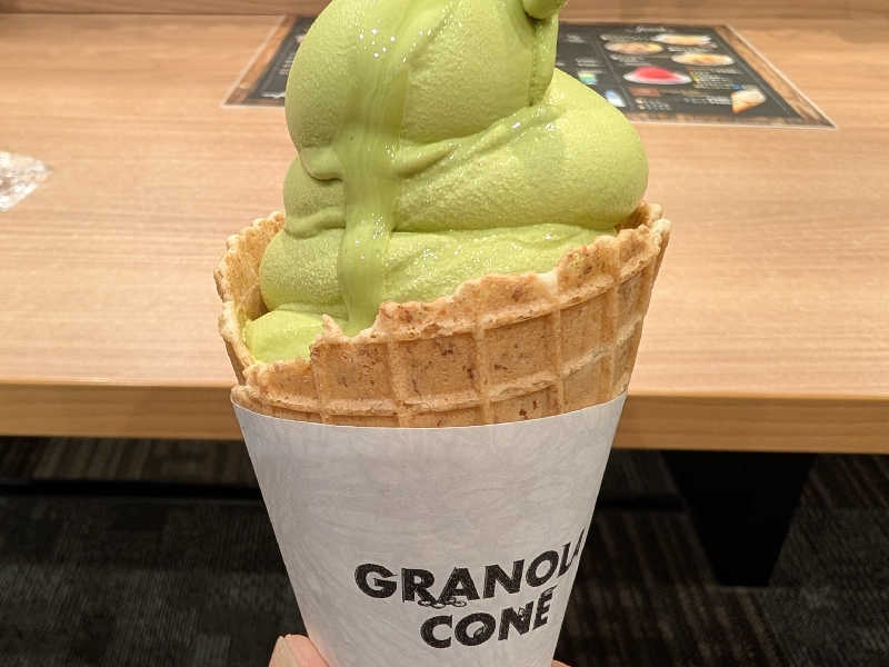 抹茶がめっちゃ濃厚です。グラノーラコーンも美味しいね。