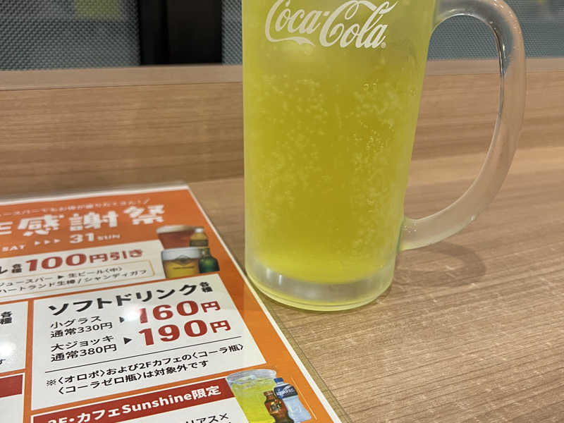 ソフトドリンク100円引きなので大ジョッキで注文