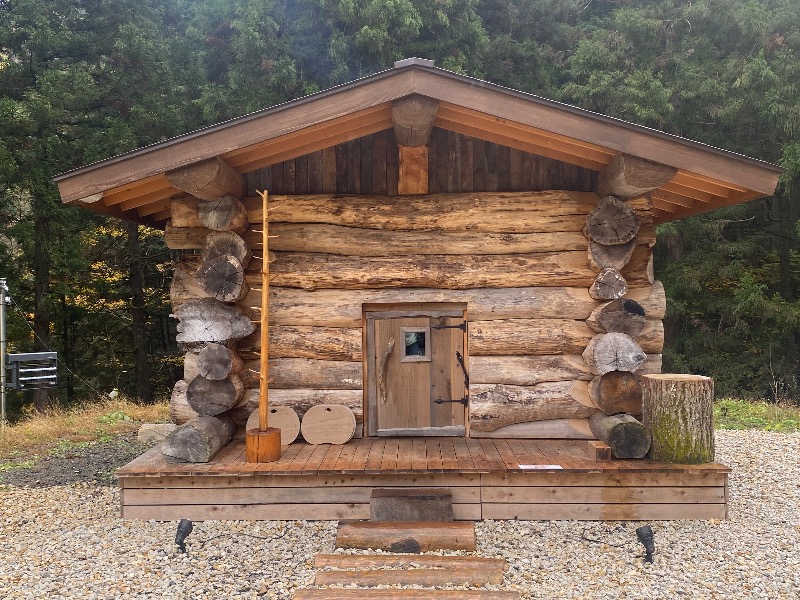 サウナ室は二ヶ所、水風呂は施設内と川の水風呂が二ヶ所、さらに外気浴スペースが多数あり、内気浴まで備わっています。大垣サウナの元支配人が手掛けたというログハウス型サウナは、居心地が抜群。温度と湿度のバランスが完璧で、細部にまでこだわりが感じられます。