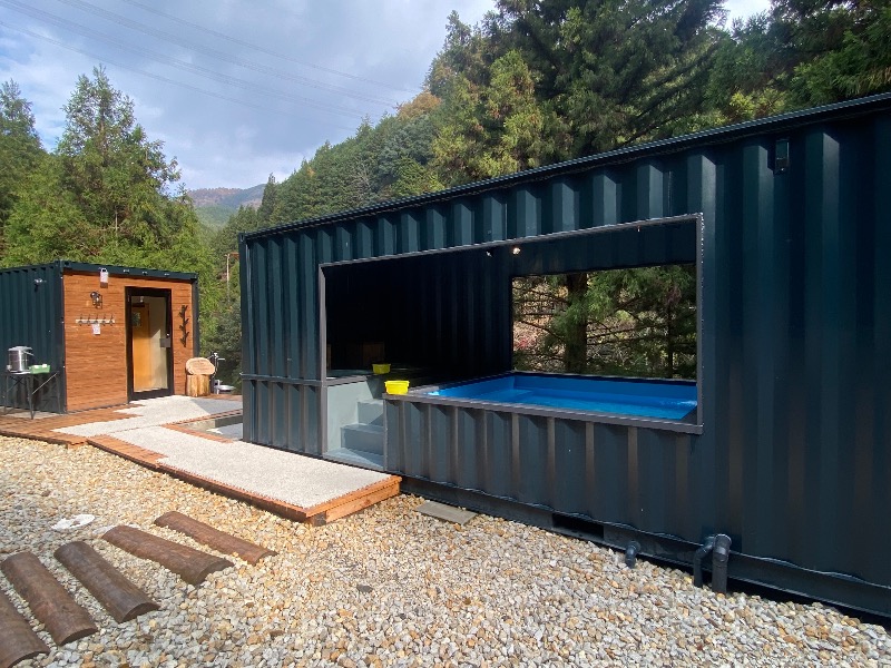 川を眼下に観ながらのコンテナサウナも、他の水風呂も勿論よく、サウナ漬けの一日。