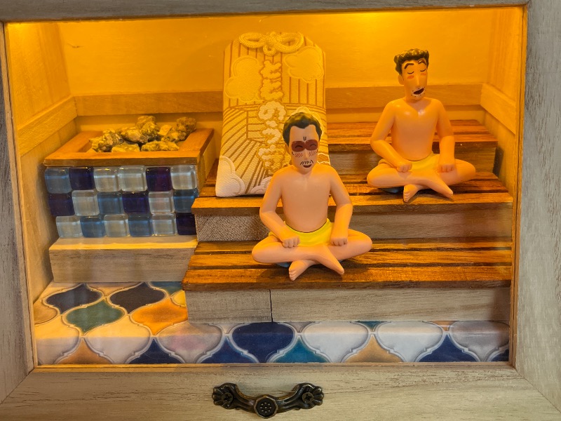 イスの目の前が主浴槽だからサウナハットを深く被って休憩し、キュインと軽く調い