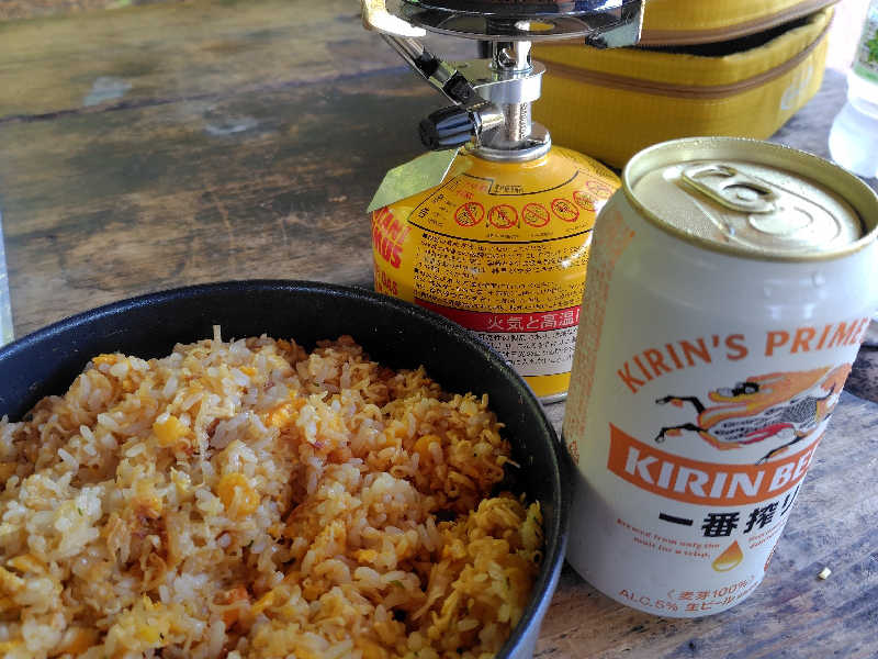 サウナ飯というより山飯😅山頂でカップヌードル炒飯作りました