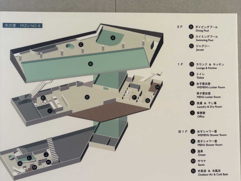 お風呂とサウナのベーシックプラン¥2,000と駐車場代¥500を支払った後、スタッフさんに施設説明をしていただく。室内履きは借りることができるけど数に限りがあるのでなるべく持参してほしいとのこと。クロックスの底がすり減ってて買い替えタイミングだったと思おう笑