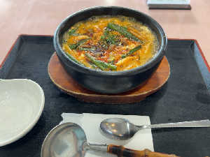 ほどよく辛く、牛すじも多く入っていた〜 サウナ後と熱々と辛いので、食べたら滝汗