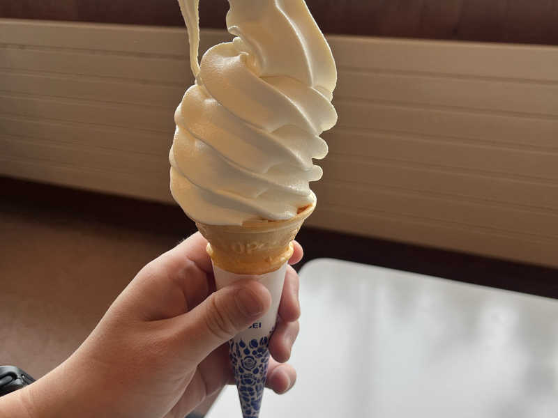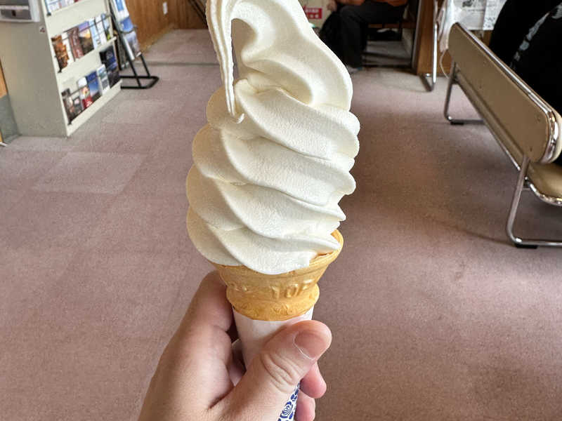 山の上で食べるソフトクリームは格別です。
