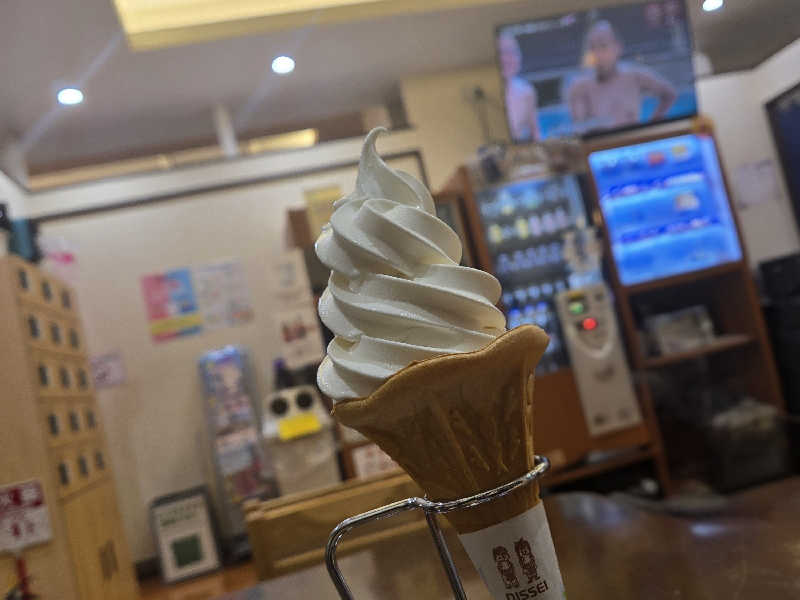 休肝日サウナのため今日はソフトクリームにしてみた。 ほかほかの体にじわ~と冷たいクリームが沁みる🍦