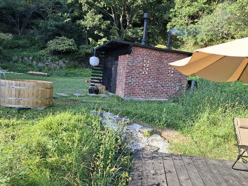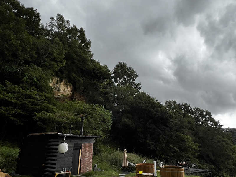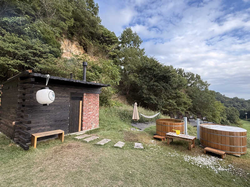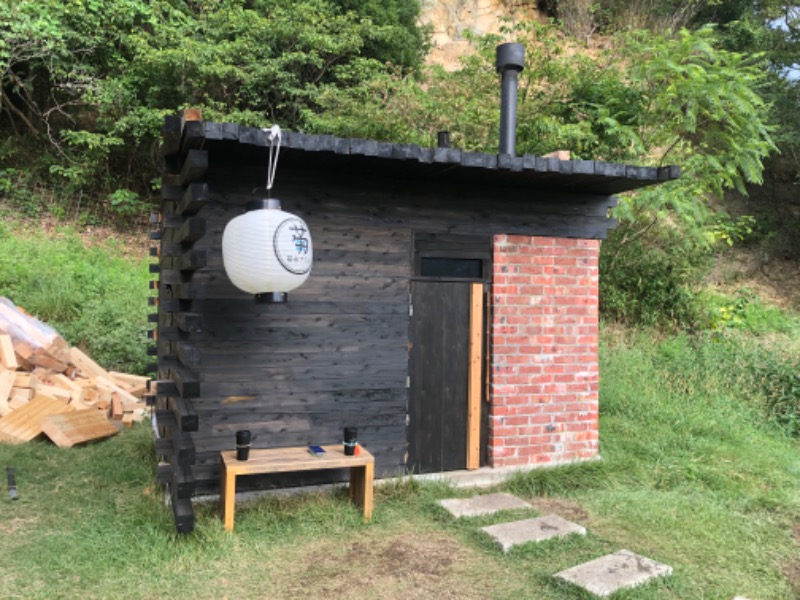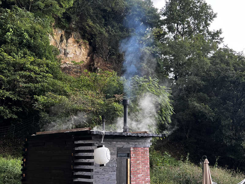 かつてゴルフ場だった時の打ち上げコースのグリーン⛳️だった場所に突然サウナ施設がありました🤣