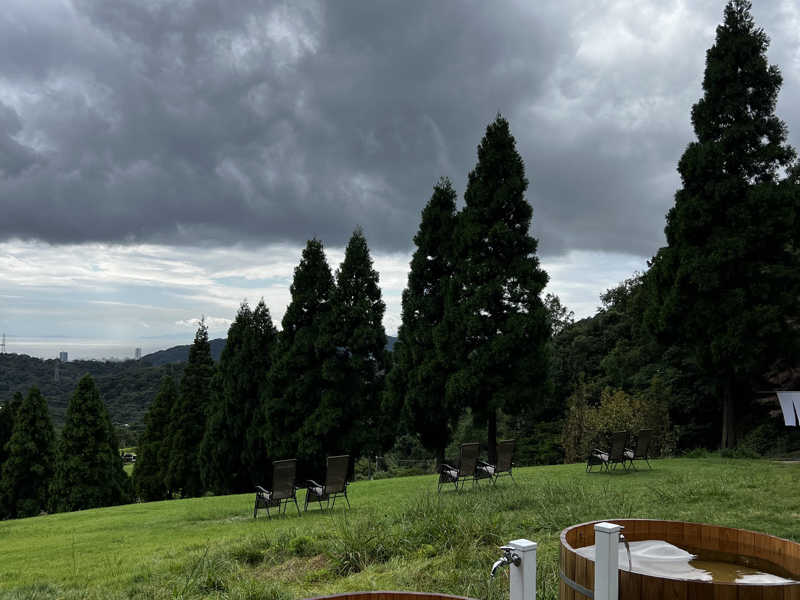 MOKIの薪ストーブと伏流水の水風呂と、遠くに神戸の街並みを見つつ丘の上でインフィニティチェア。
