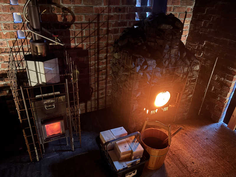 で、そのサウナ室はレンガと木で作られ、中には8Seas Saunaで見たストーンたっぷりのMOKIストーブが鎮座してる🔥