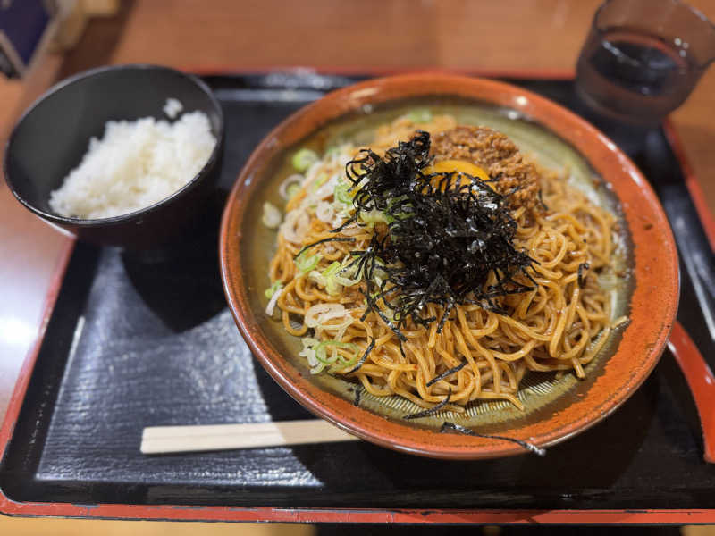 うどんのセット頼んだハズだったけど蕎麦がきた、食べ初めて気付いた😐。まっ、いいか〜