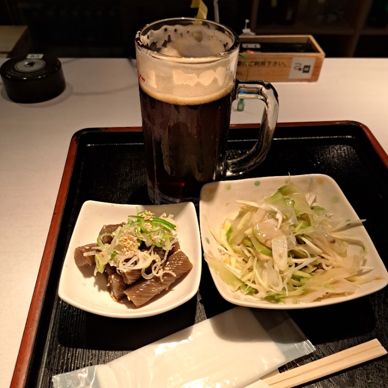 ~の当然、飲み。だけど、飲みスペースが思ったより小さい。もっと居酒屋ちっくに飲み食いしてる人も多いと思ってた。けど、食べ物は旨い。
