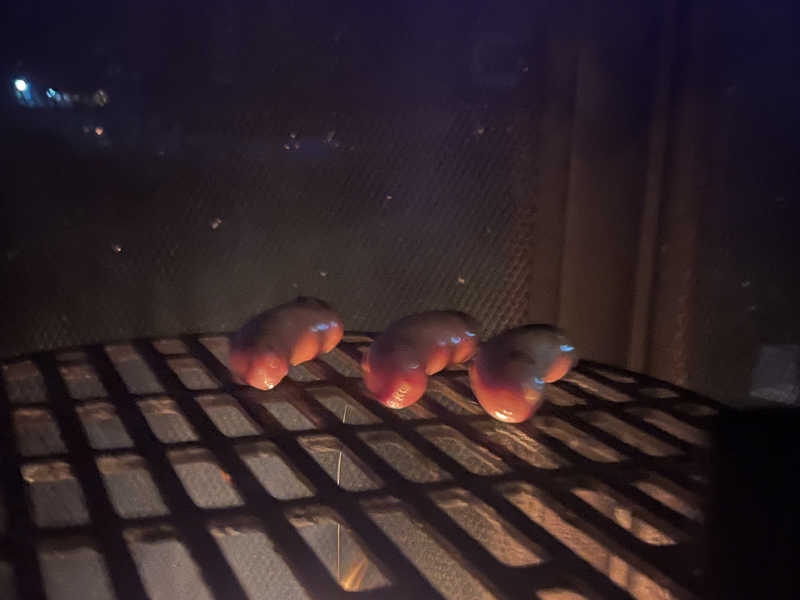 日も落ち、並木マネージャーの計らいで焚き火をしてもらえたので、ソーセージを焼く。