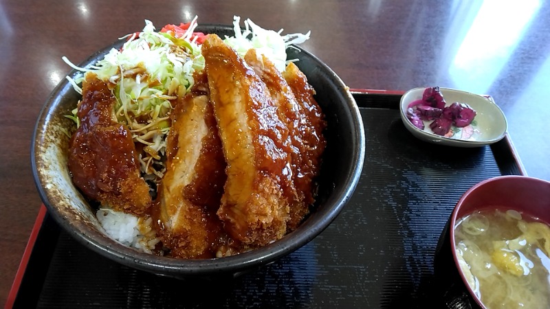 湯上がりは食事処で名物のソースかつ丼を喰らう。これもボリューミーで美味しかった!