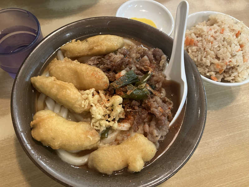 最初に甘々の牛しぐれで甘々肉うどんを堪能してから、出汁とネギ、一味をたっぷり追加して出汁がしっかり効いたごぼう天うどんに。