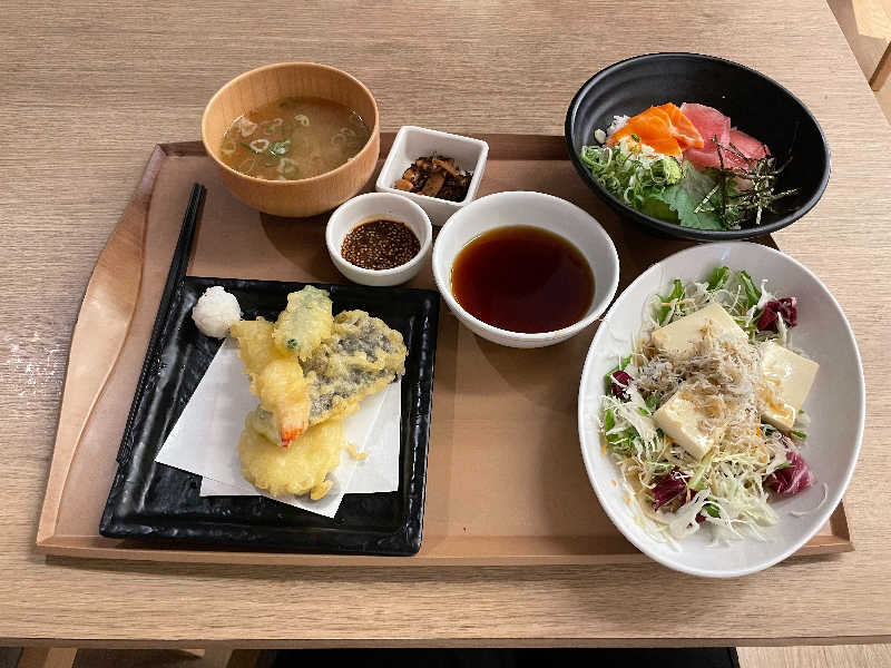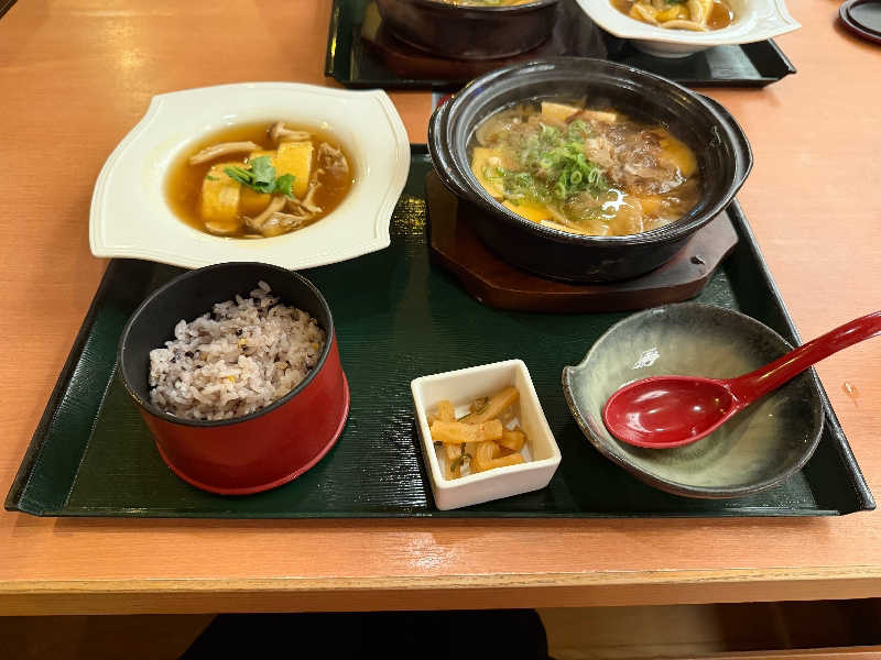 岩盤浴の白虎雲でのナノミスト雲海で大汗をかき、レストランで肉吸い豆腐定食をいただいたあと少し休憩してからサウナへ。