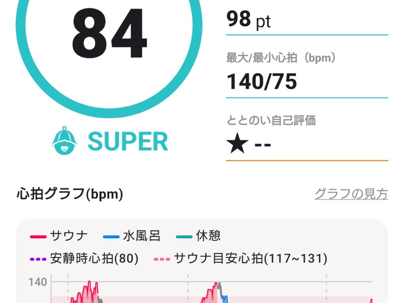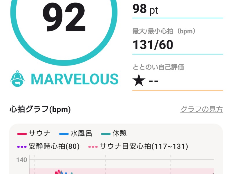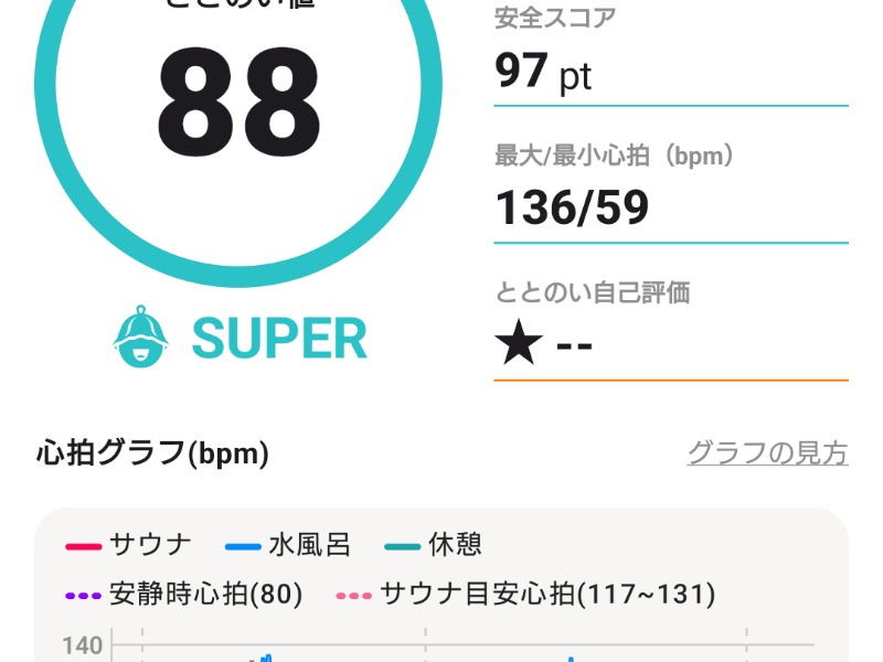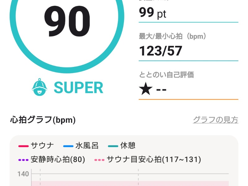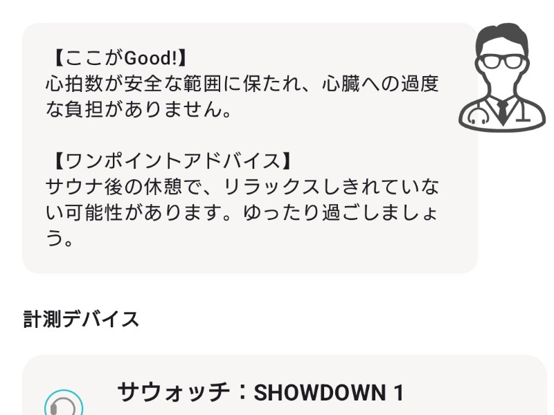 『サウナ後の休憩で、リラックスしきれていない可能性があります。ゆったり過ごしましょう。』