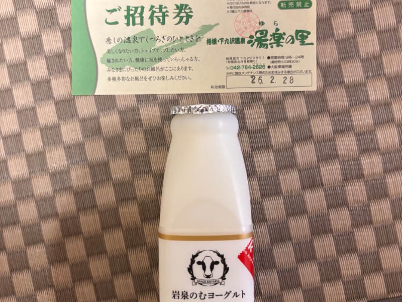 5セットを終えて湯上がり後に何気にゲームコーナーでスロットを打ったら100円でコインを4枚ゲットして岩泉の飲むヨーグルトと無料入浴券をゲットしました 笑