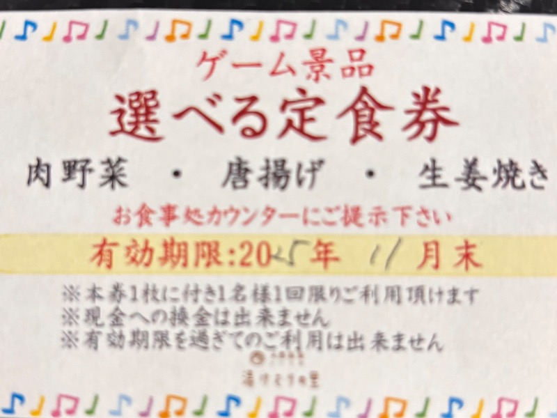 又ゲームで定食無料券をゲットしたので次回は最後の無料入浴券とセットで楽しみます。