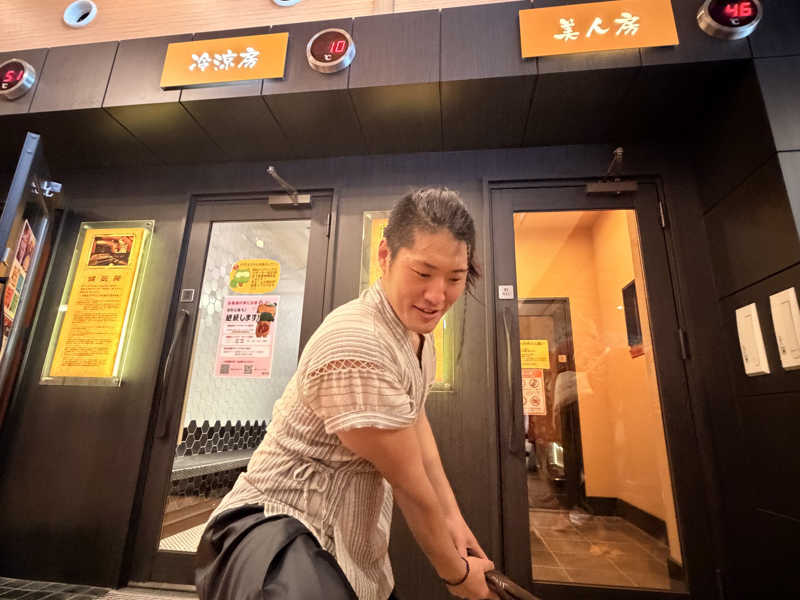 熱風香りに加えて技もこだわっていて、浴室でキレキレで熱い風を届ける姿は熱波師であった👏隣の若者が受ける前は12分は長いよーって言っていたが、あっという間に終わる時間にびっくりしてた姿が印象的。あれはアウフグース/熱波にハマったな‥笑