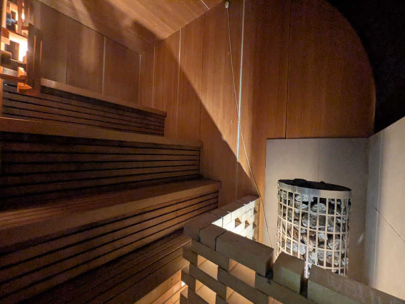 ドライサウナはアチアチ!セルフロウリュのヒノキアロマとってもいい香りでした。常連さんとおぼしき人が砂時計落ちきる前に5杯くらいバシャバシャしてて常に強湿度笑。夕方は人が結構いましたが、夜朝はちょこちょこ貸し切りだったので寝サウナ。ちょうど欲しいやつのサウナでした!あ、でも朝はセルフロウリュのバケツなかったな。夜だけなのかも。