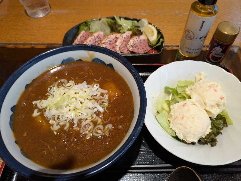 最高すぎて朝ごはんもりもり頼んだ。完食です。相席になった人、汗だくカレー蕎麦すすり女の正面でごめんな…でもカレーとオイル忘れられなくて…