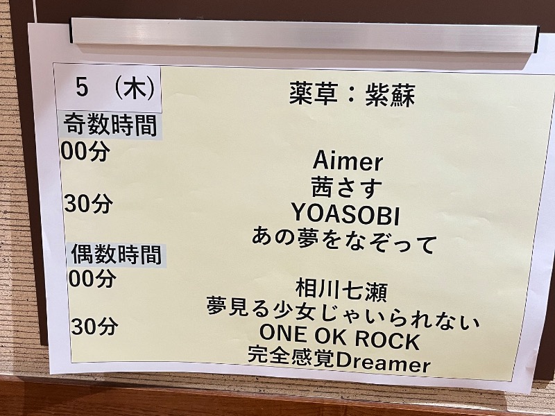 前来た時はなかった、ミュージックロウリュウが岩盤浴の方にあってビックリしました!