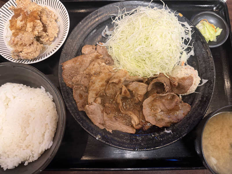 唐揚げは美味しかったが生姜焼きはちょっとハズレかも、、揚げ物とハンバーグが有名っぽい笑