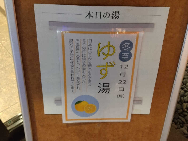 一言:早出上がりに訪れた。18:40イン。いつもより落ち着いていて、ゆったり過ごせた。外湯には柚子が浮かんでいた! そうか、今日は冬至なんだ! シフト勤務をしていると曜日や日にちの感覚がズレてしまいがちだ😅