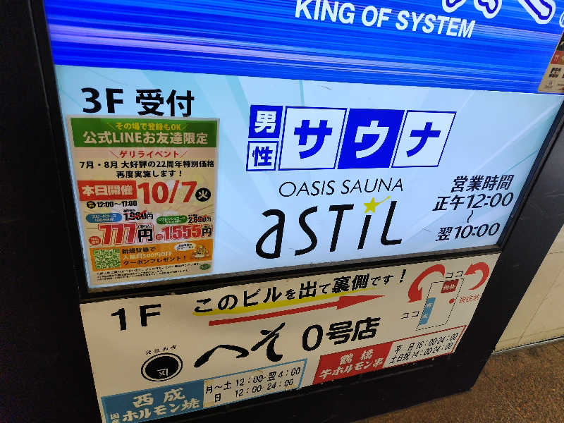 初訪問。受付でタオルや館内着、岩盤浴などのオプションを聞かれるのだが、タオル館内着共にセルフで取っていくスタイル。大丈夫なのか。