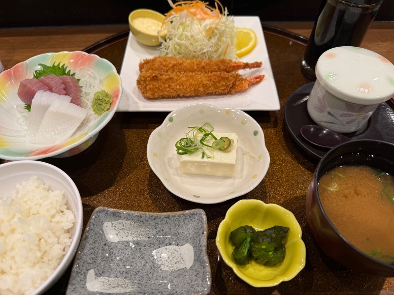 ぶり刺、鶏唐あげごはんセット(小盛り)。