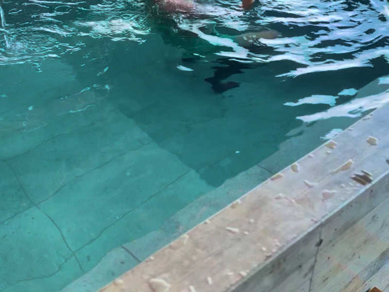 石造り水風呂は、北アルプスさら湧き出る天然水😌