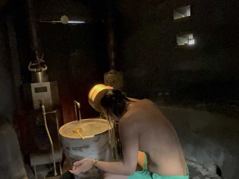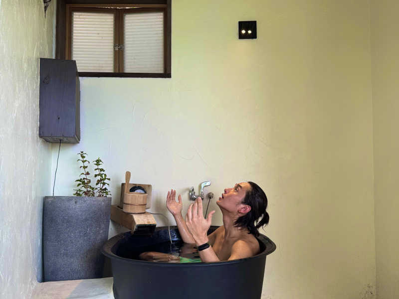 井戸水水風呂で頭からシャワーをかけてもらいながら入るという至極のサービスも、、