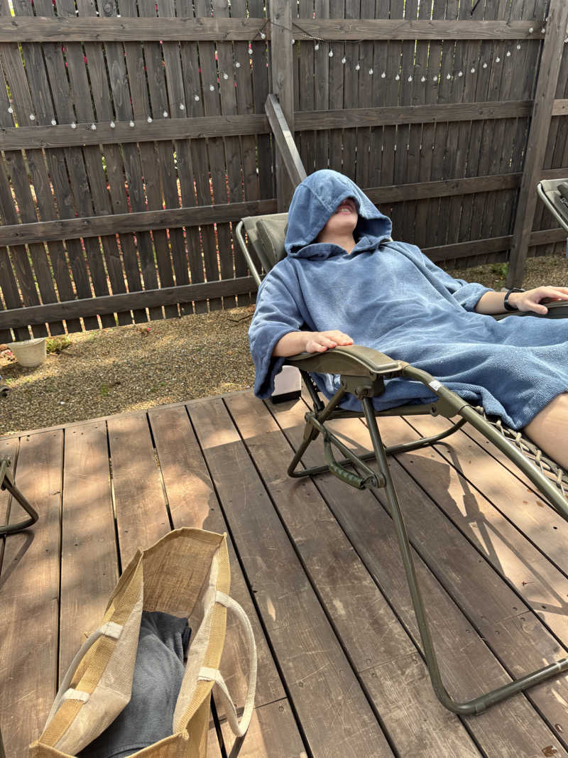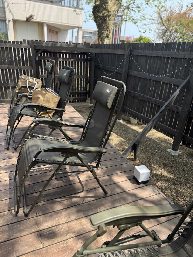 インフィニティチェアも木漏れ日がいい感じに入ってきて最高、、