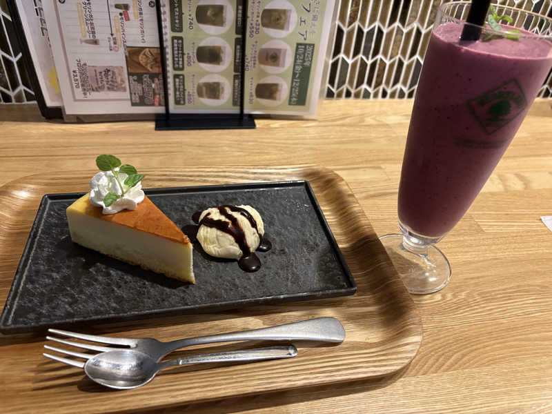 笹森さんと昨日から始まったクリスマスメニューのベイクドチーズケーキが目当て👀