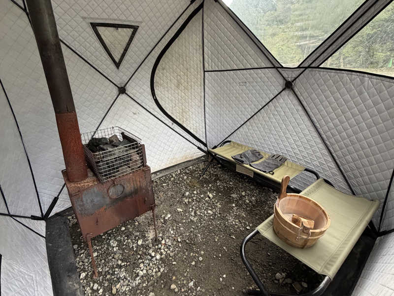 テントサウナもしっかり温かくなってくれるので、自分で薪を補充しながら、セルフロウリュができる醍醐味は他ではなかなか味わえない。